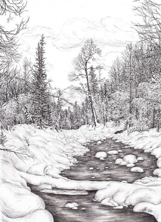 ![Зимний пейзаж карандашом]()