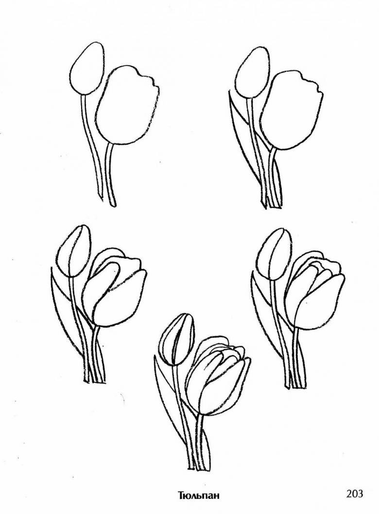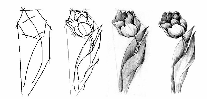 ![Тюльпаны карандашом поэтапно]()