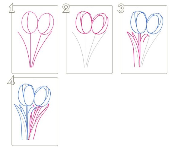 ![Пошаговое рисование тюльпанов]()