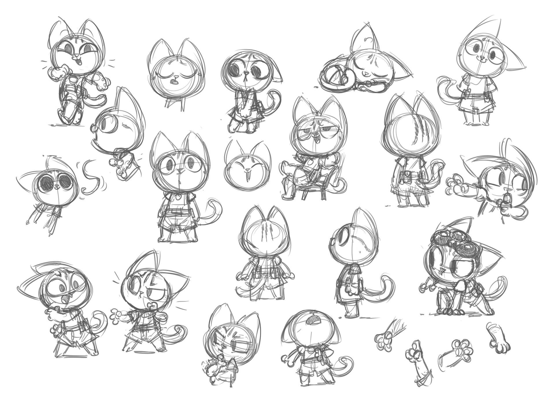 ![Кошачьи позы для рисования Чиби]()