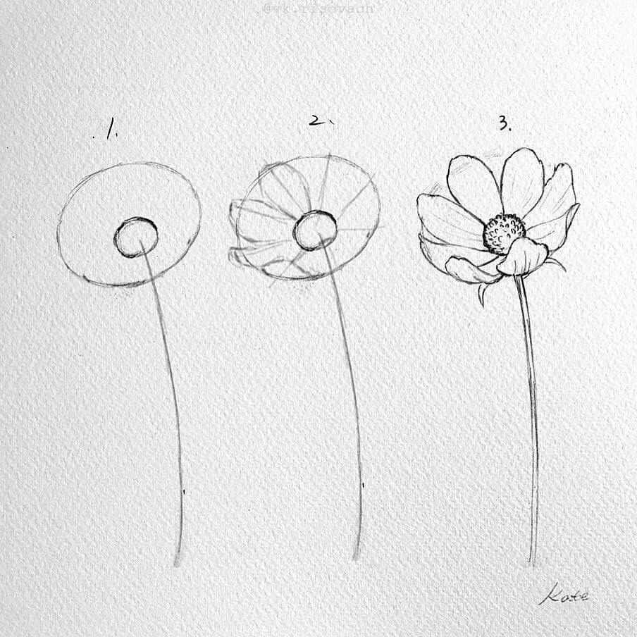 ![Пошаговое рисование цветы]()