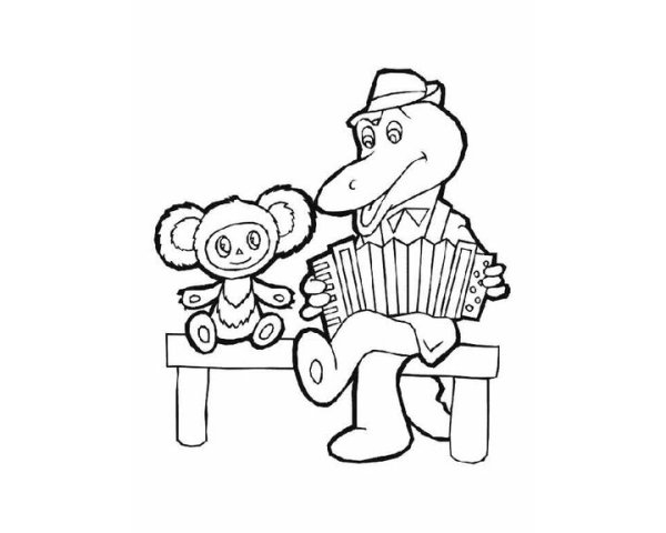 Крокодил Гена и Чебурашка мультфильм раскраска