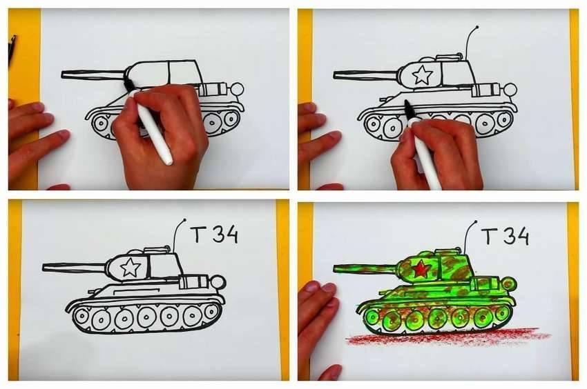 Танк т34 рисунок поэтапный