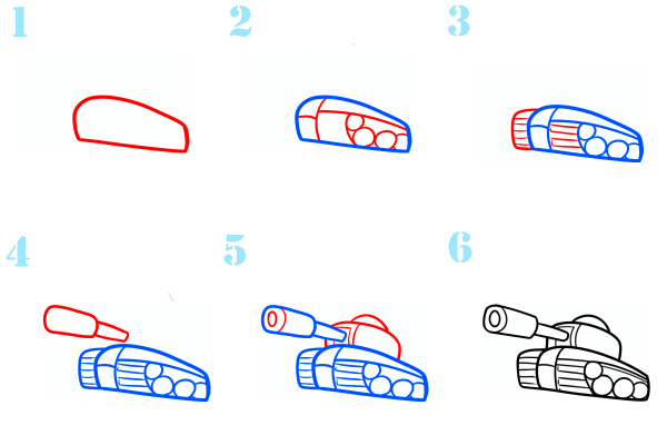 ![Танк пошаговое рисование для детей]()