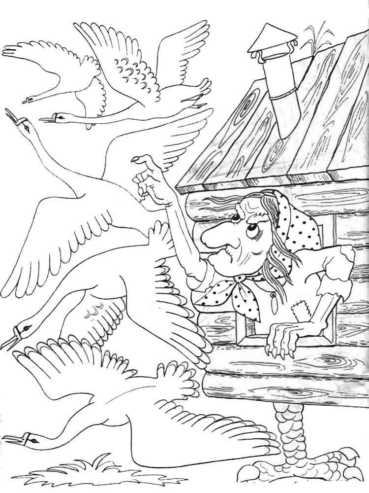 Раскраски к сказке гуси лебеди для детей