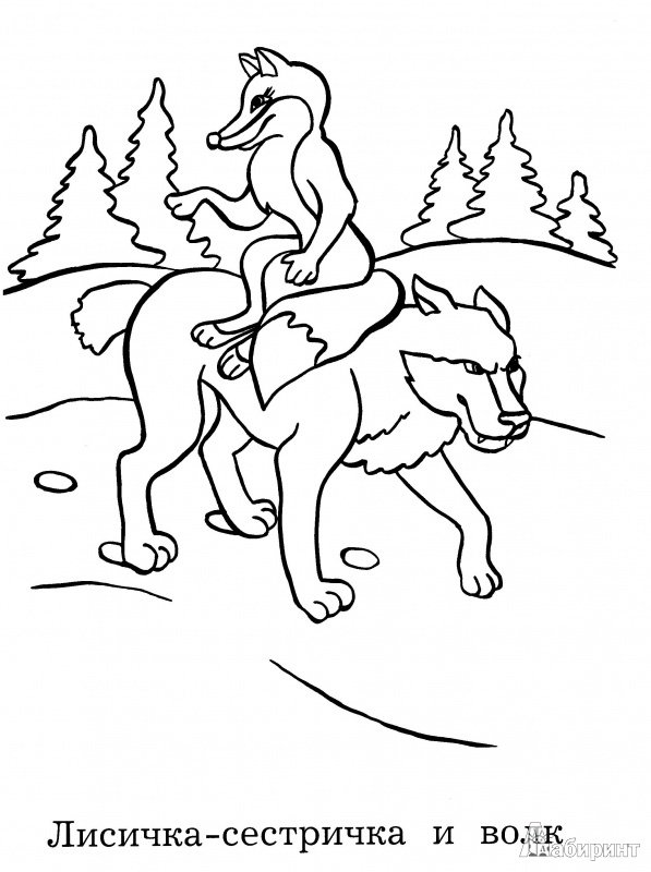 Лисичка сестричка и волк раскраска
