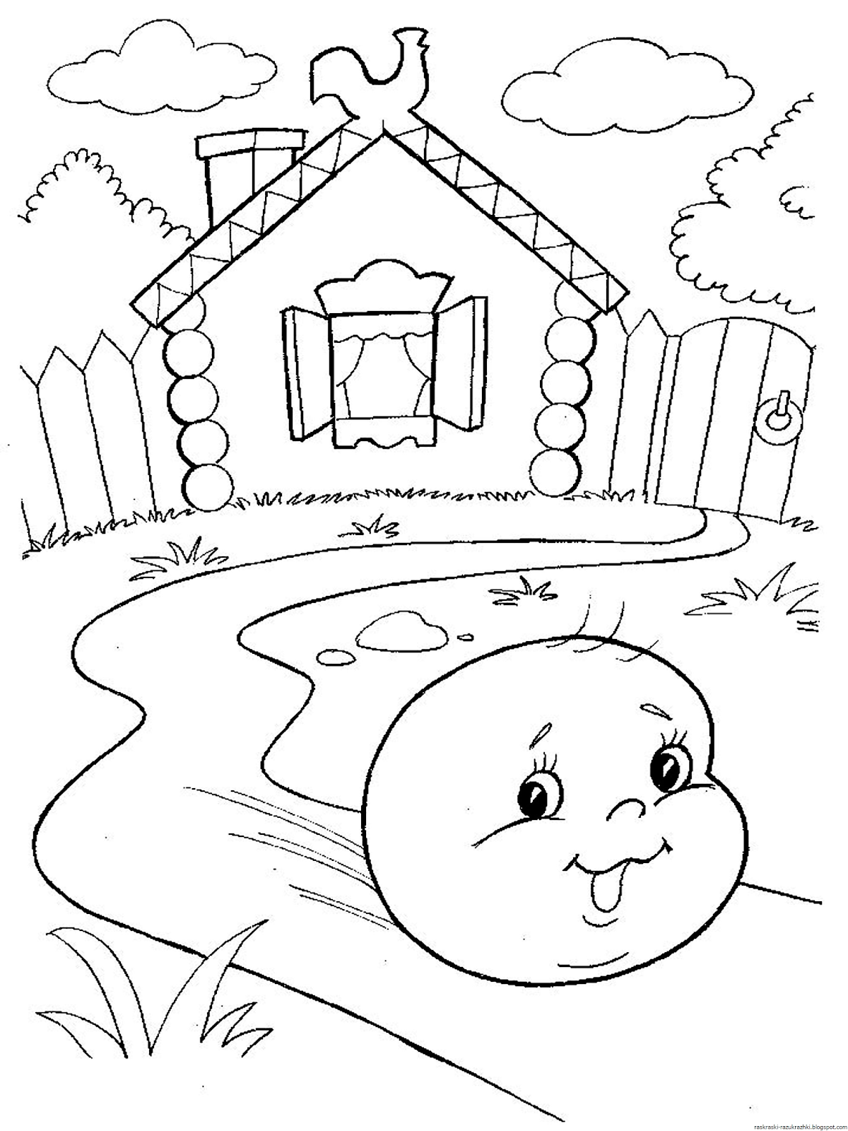 ![Раскраски для детей по сказке Колобок]()