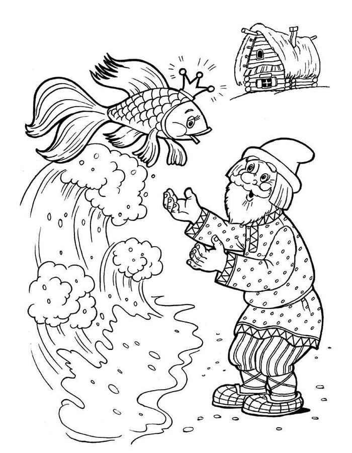 ![Сказка о золотой рыбке Пушкин раскраска]()