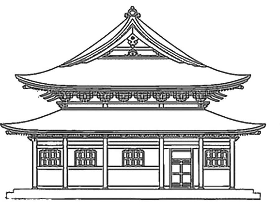 Храм Хигаси Хонгандзи Япония рисунок карандашом