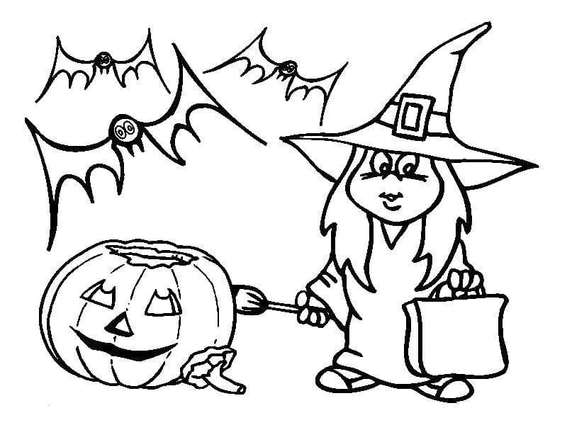 Раскраска ведьмочка на Хэллоуин