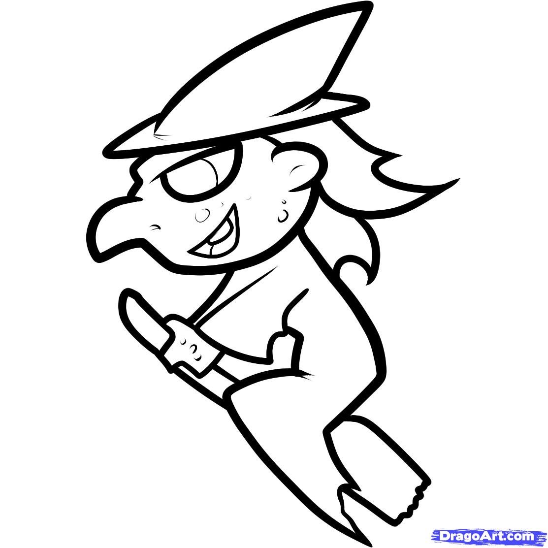 Нарисовать ведьму на метле