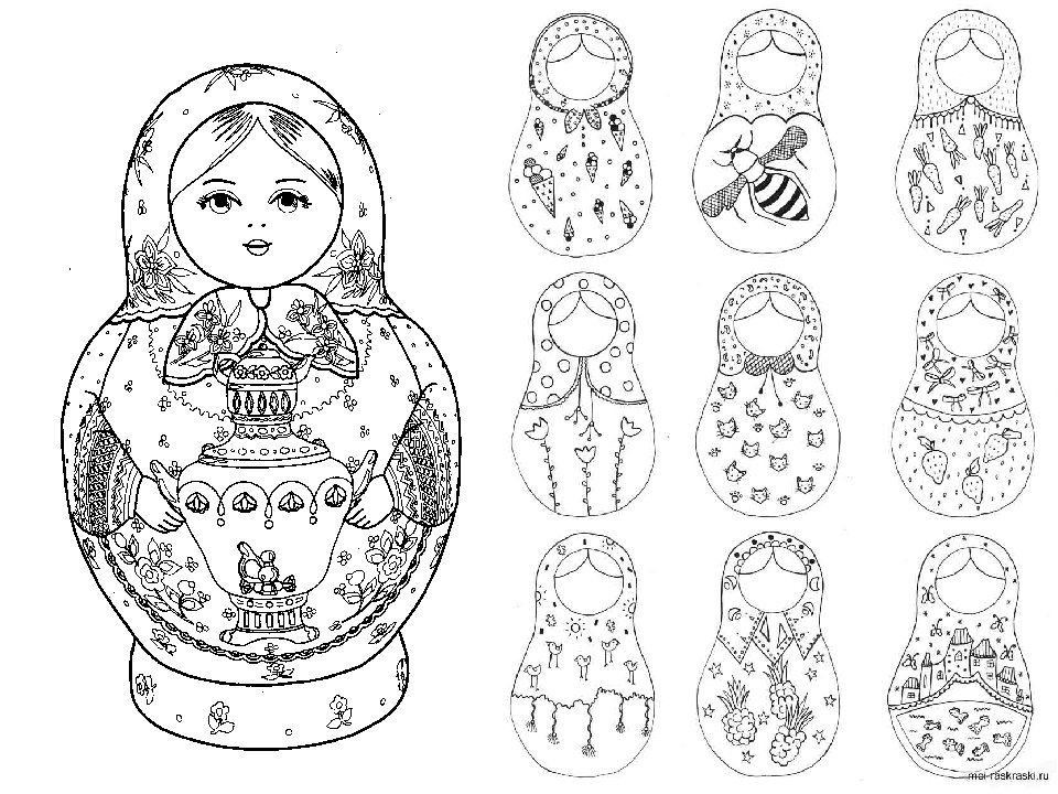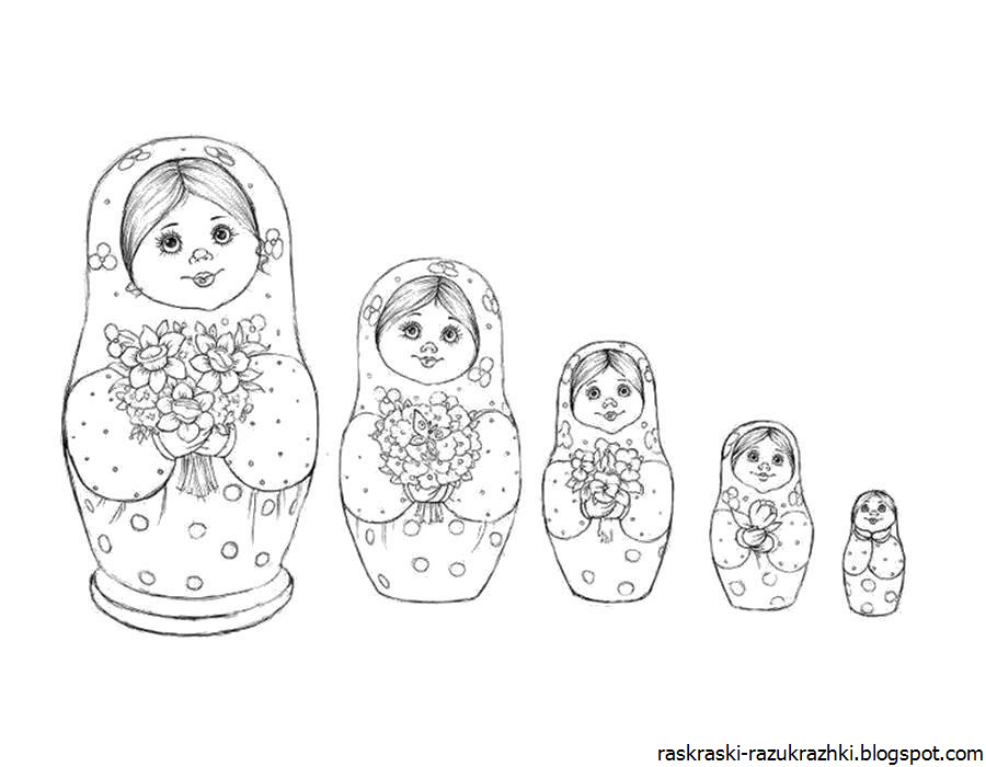 Раскраски матрешек для детей средней группы