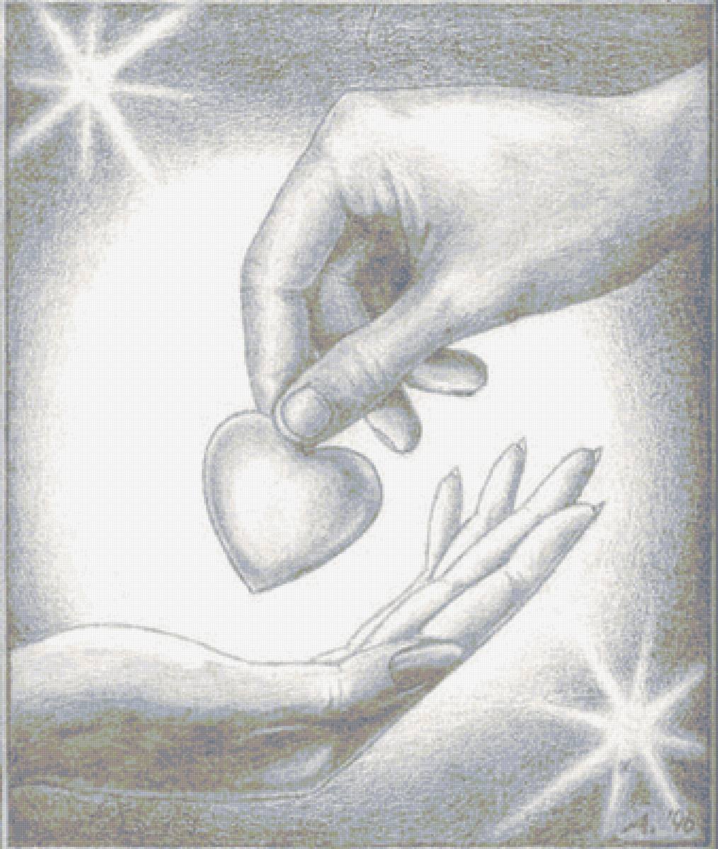Сердце в руках - это прекрасный рисунок, выполненный карандашом. Внимательно проработанные детали и тонкие линии создают эффект глубины и объема, придают изображению особую выразительность. Рисунок передает нежность и любовь, символизируя сильные чувства, которые можно держать в своих руках. Каждая линия отражает трепетное движение руки художника, его творческую энергию и страсть к искусству. Этот рисунок станет прекрасным украшением интерьера, наполнив его теплотой и романтикой.