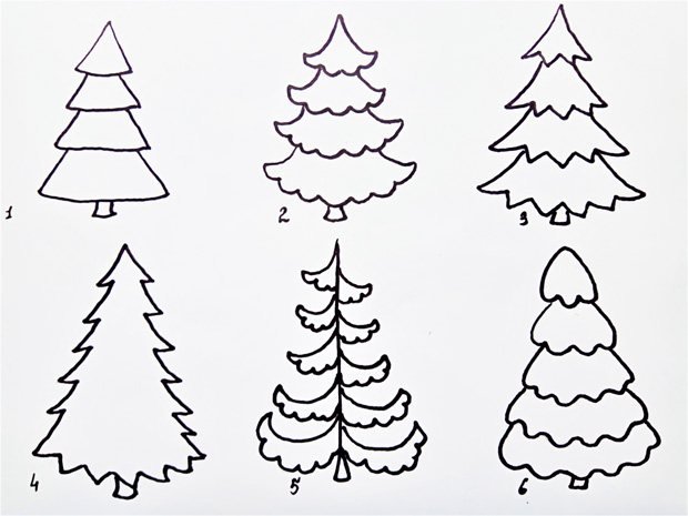 ![Как нарисовать елку]()