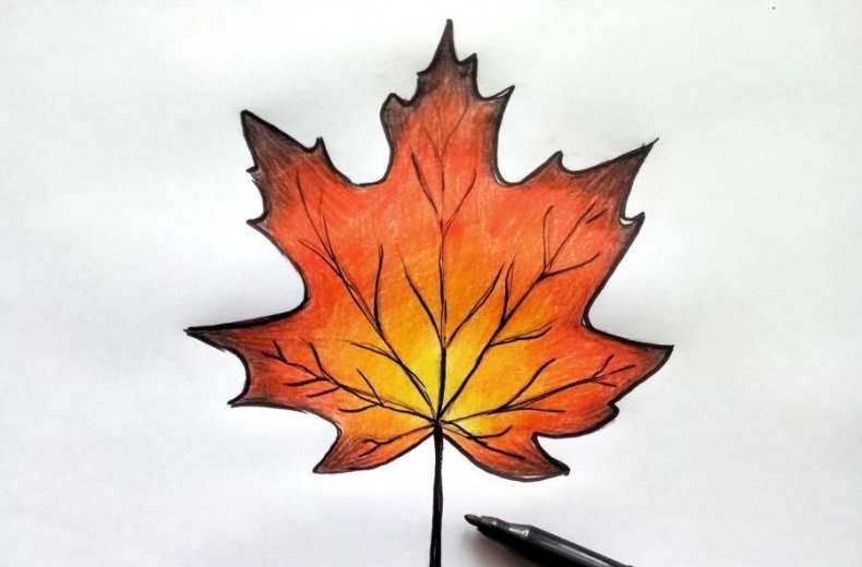 ![Кленовый лист карандашом]()