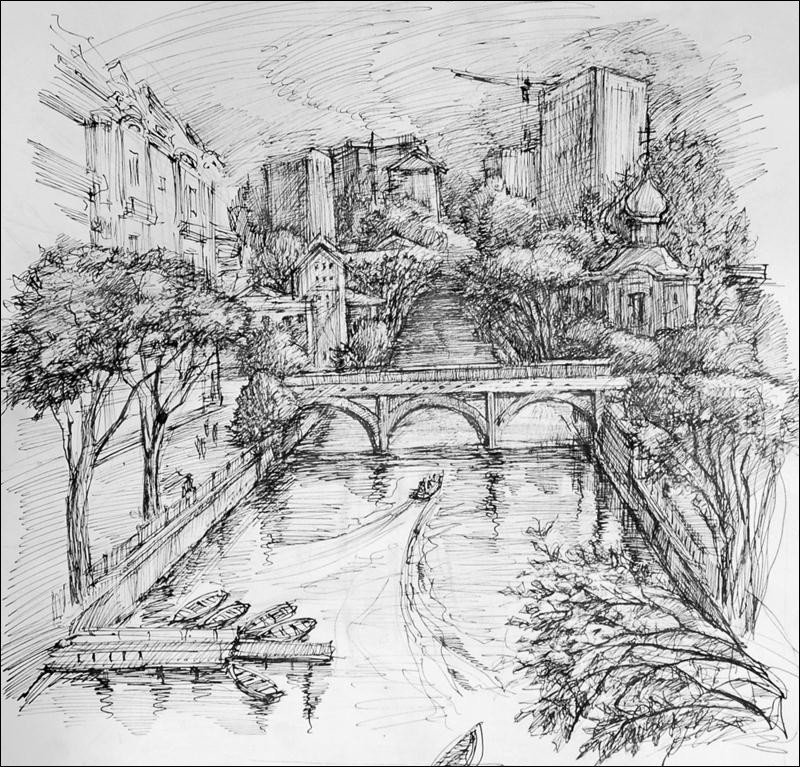 ![Архитектурный пейзаж карандашом]()