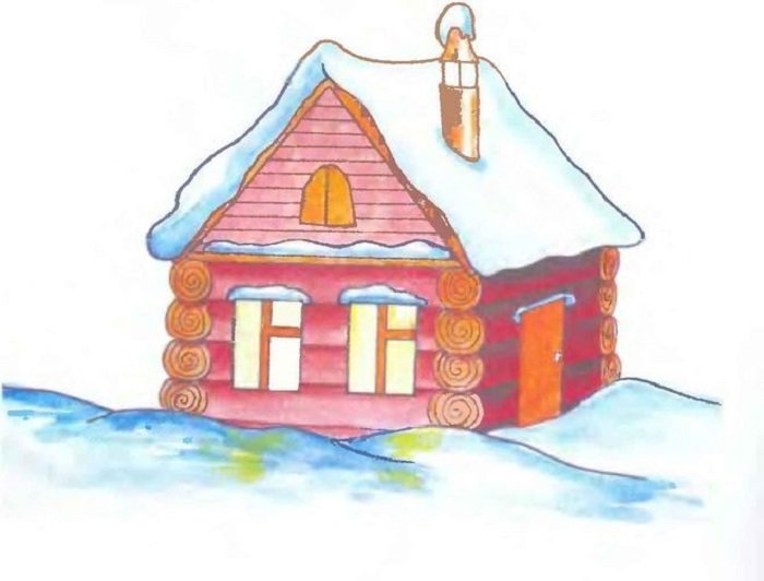 Рисование зимняя избушка