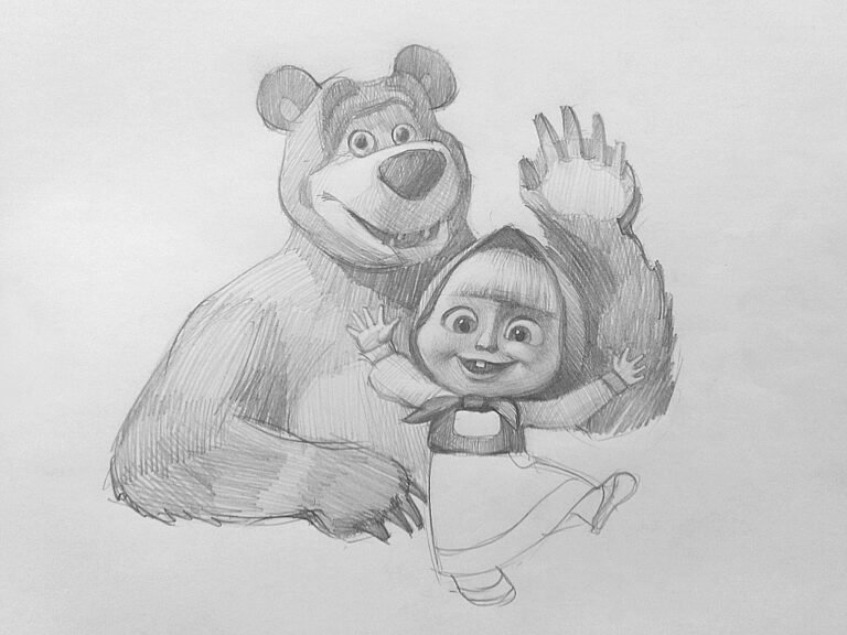 "Маша и Медведь" - это захватывающий мультсериал, который покорил сердца многих детей и взрослых. В этом рисунке, выполненном карандашом, передаются неповторимые моменты из жизни Маши и ее верного друга Медведя. Каждая черточка карандаша создает глубину и объемность персонажей, а также передает эмоции и настроение сцены. Восхитительные детали и прекрасное взаимодействие Маши и Медведя делают этот рисунок поистине уникальным и незабываемым. Неудивительно, что "Маша и Медведь" стали любимыми героями многих, а их приключения стали вдохновением для создания шедевров искусства, как этот замечательный рисунок карандашом.