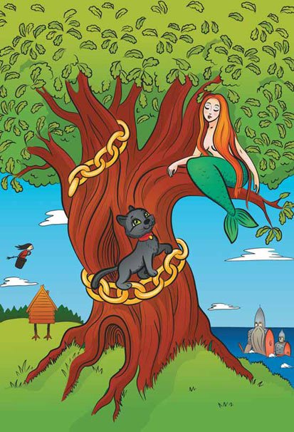 Иллюстрация к сказке Пушкина у Лукоморья дуб зеленый