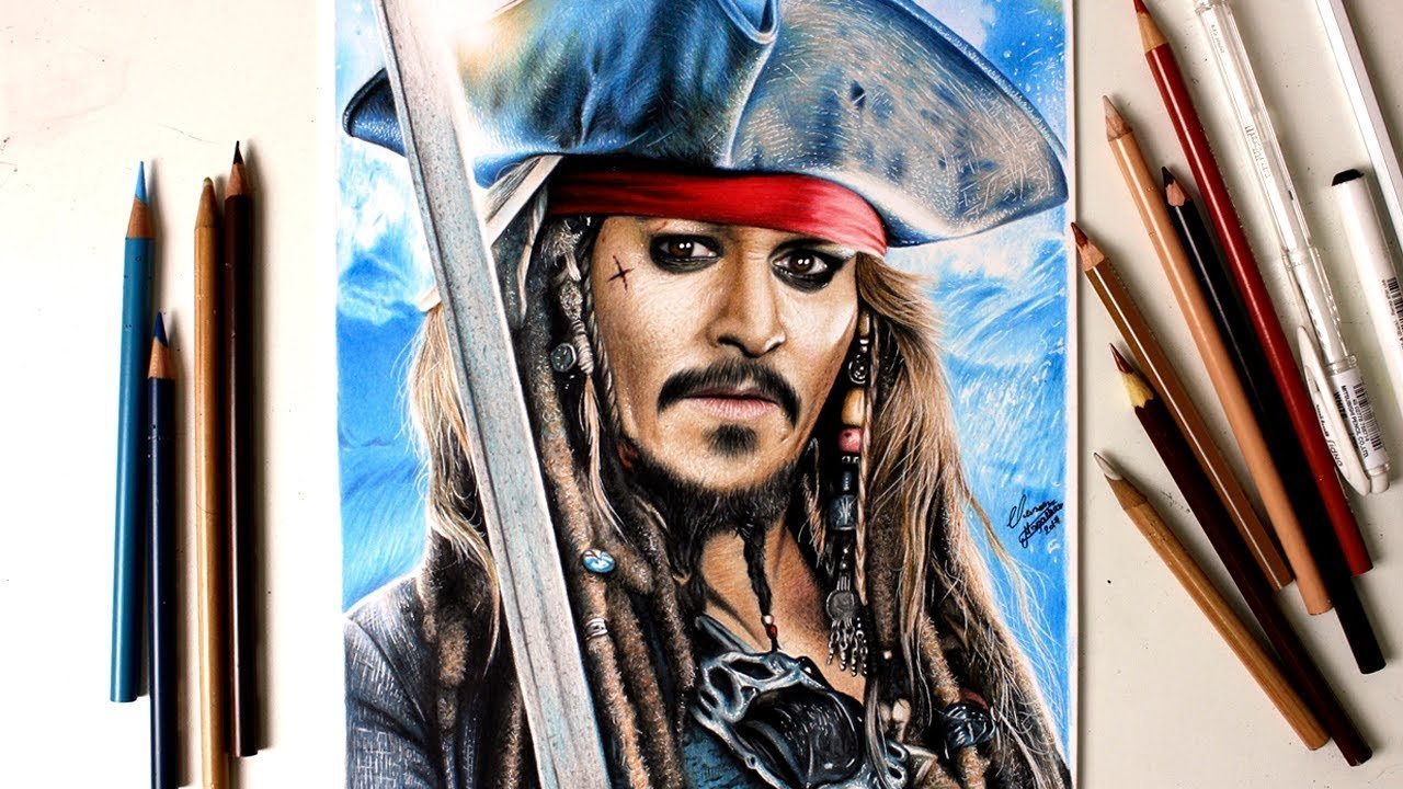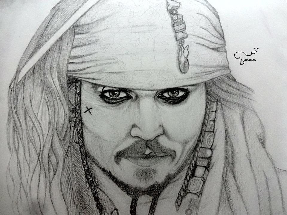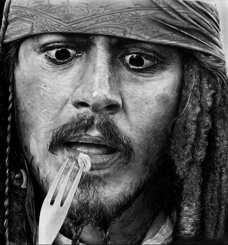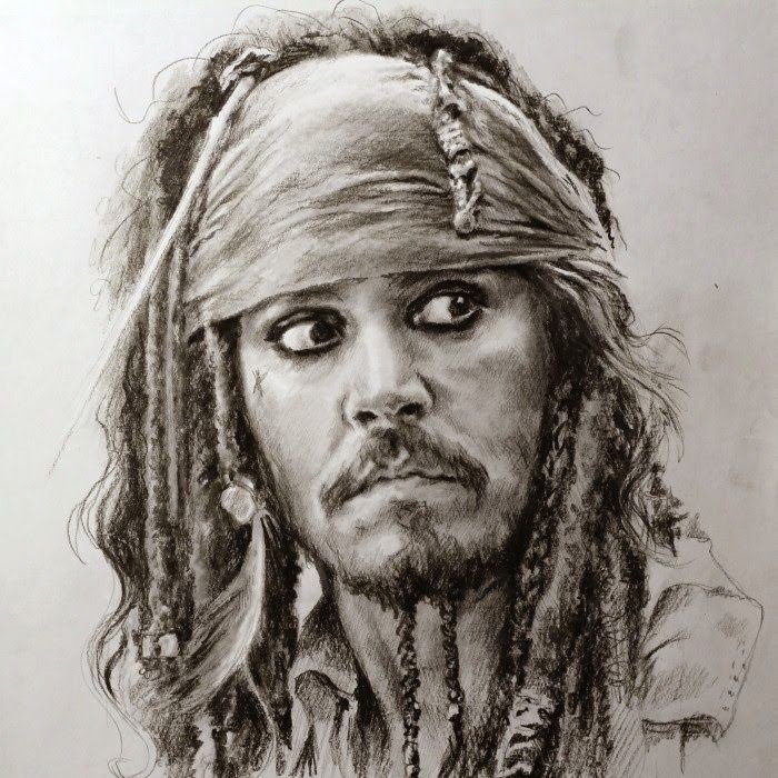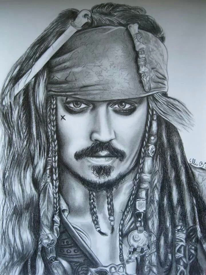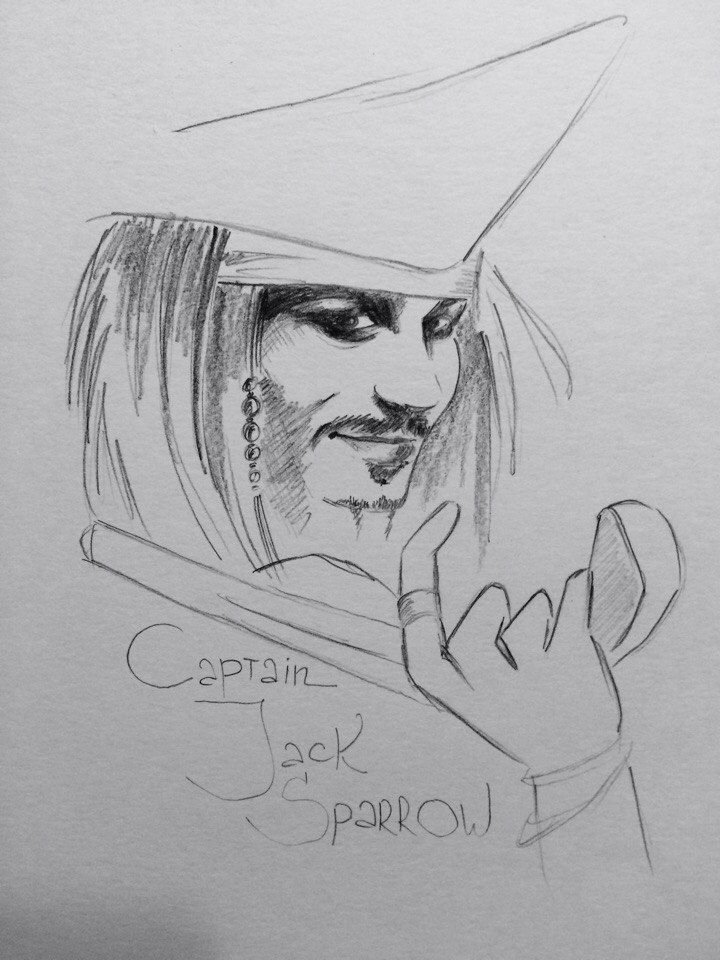 ![Джонни Депп карандашом Капитан Джек Воробей]()