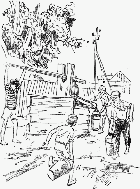 ![Рисунки к повести Гайдара Тимур и его команда]()