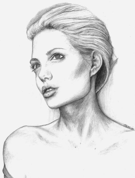 ![Анджелина Джоли портрет карандашом]()