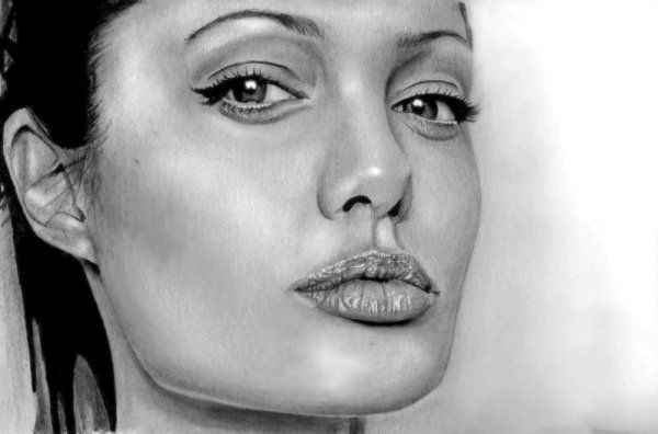 ![Карандашный портрет Анджелины Джоли]()
