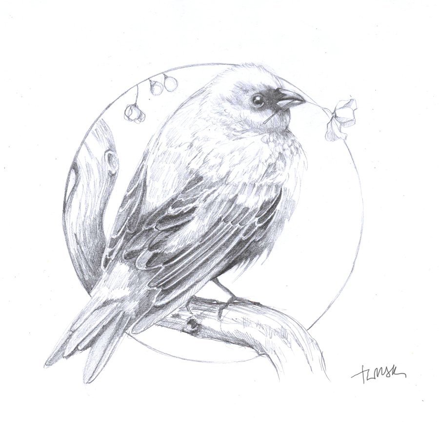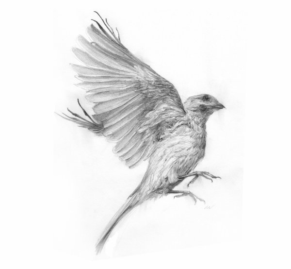 Эскиз птички карандашом