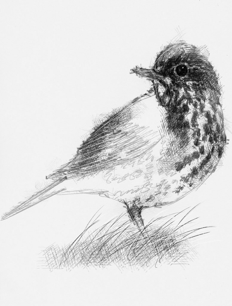 ![Эскиз птички карандашом]()