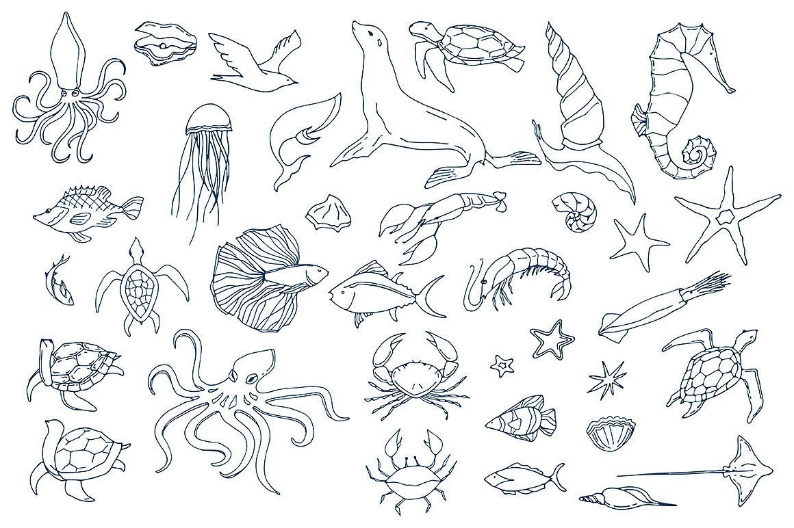![Наброски морских обитателей]()