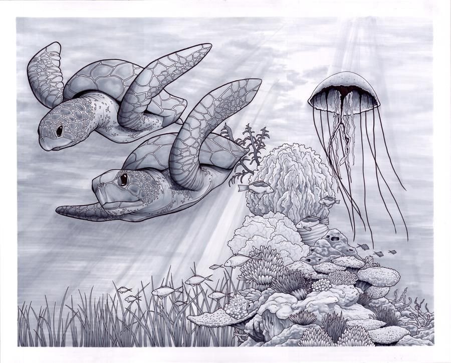 ![Морская черепаха рисунок]()
