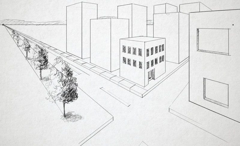 Зарисовка города линейная перспектива