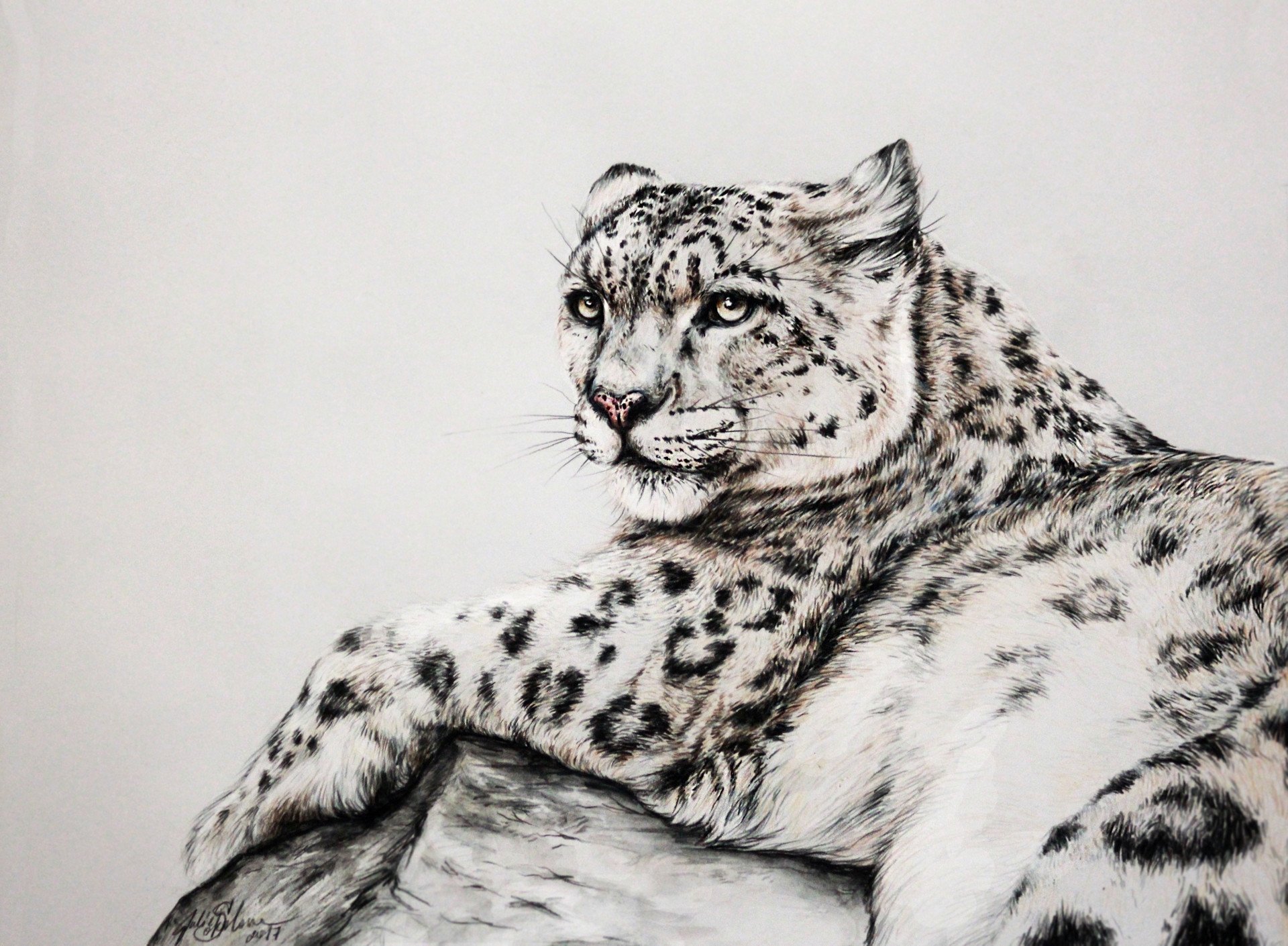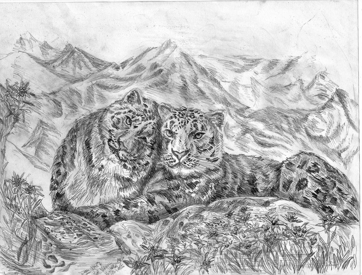Снежный Барс карандашом