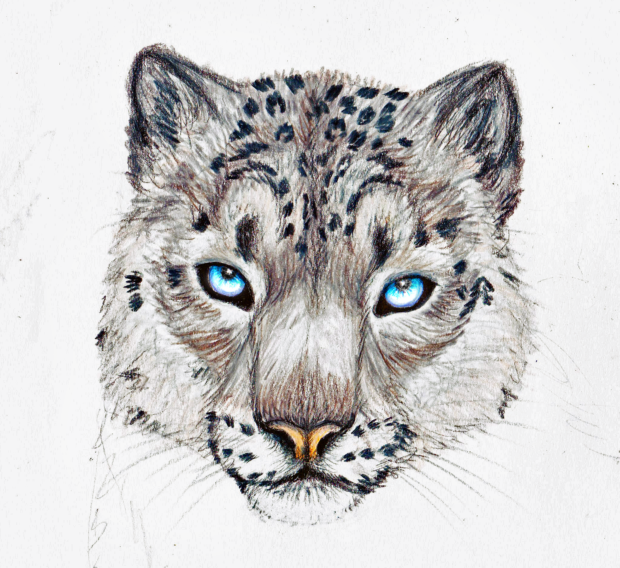 ![Снежный Барс цветными карандашами]()