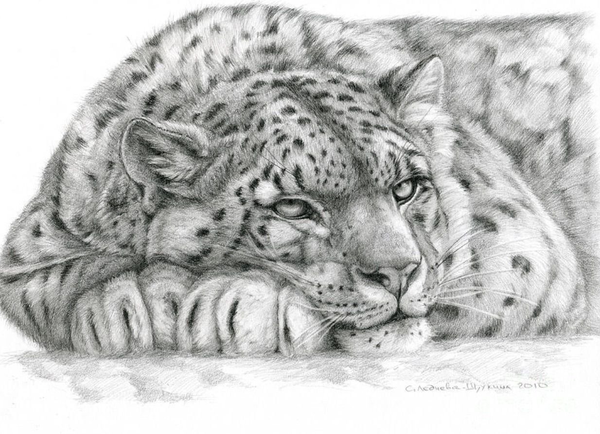![Барс лежащий карандашом]()