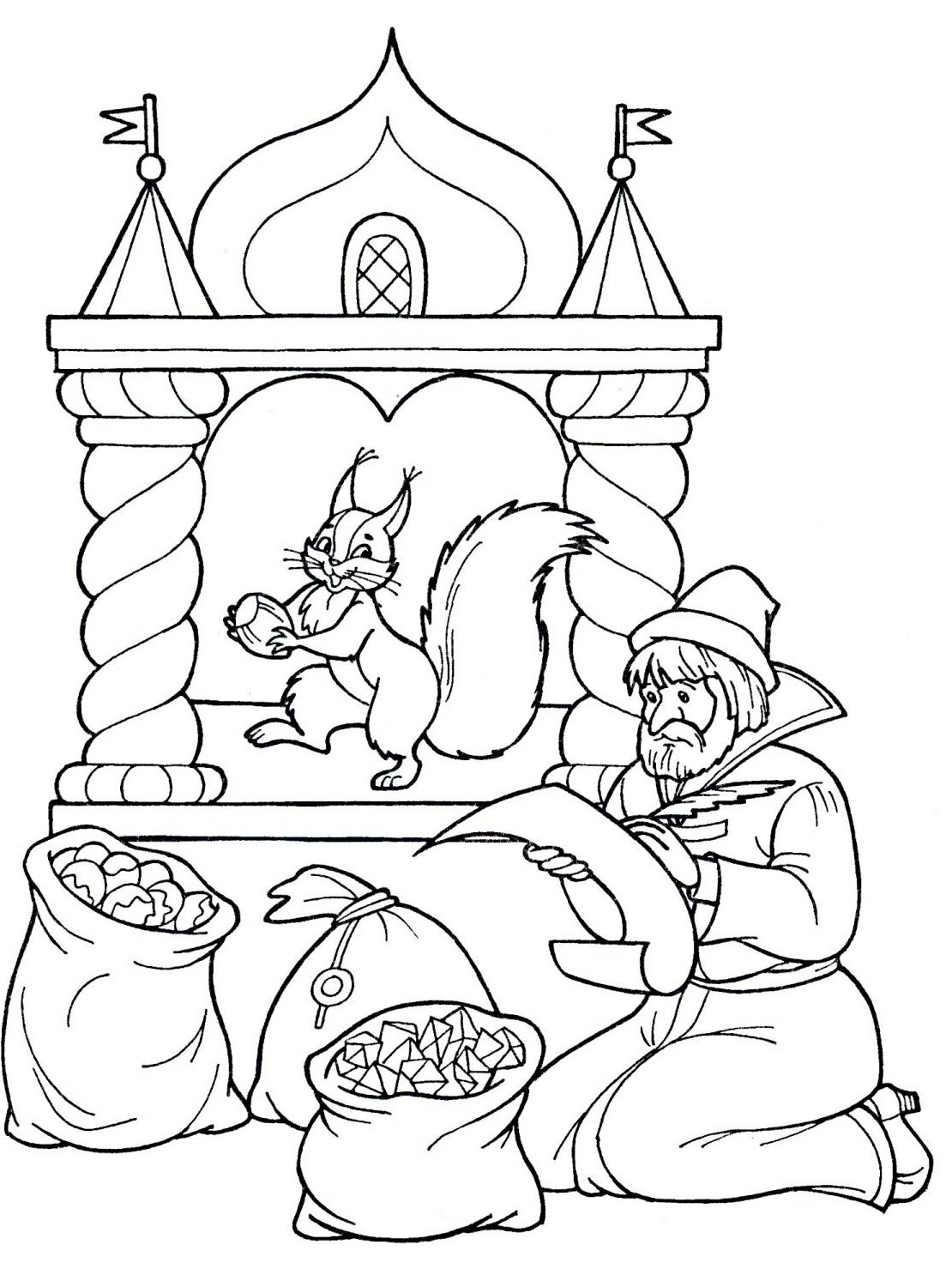 ![Белка из сказки Пушкина о царе Салтане раскраска]()