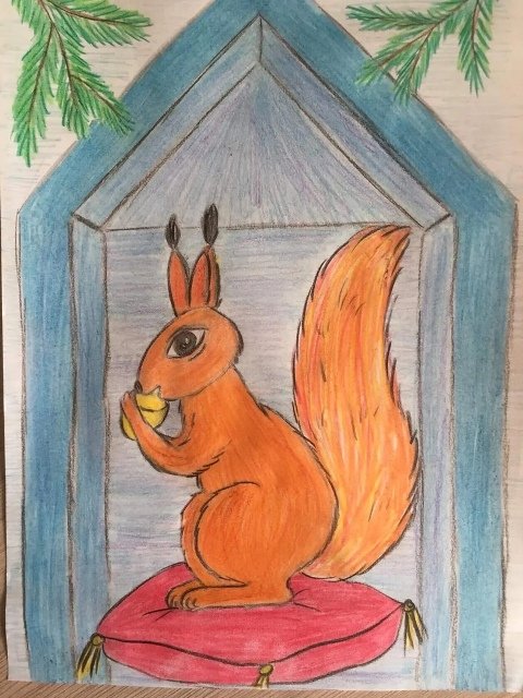 ![Иллюстрации к сказке о царе Салтане ребенок рисует белка]()