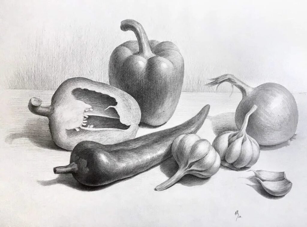 Натюрморт с овощами карандашом