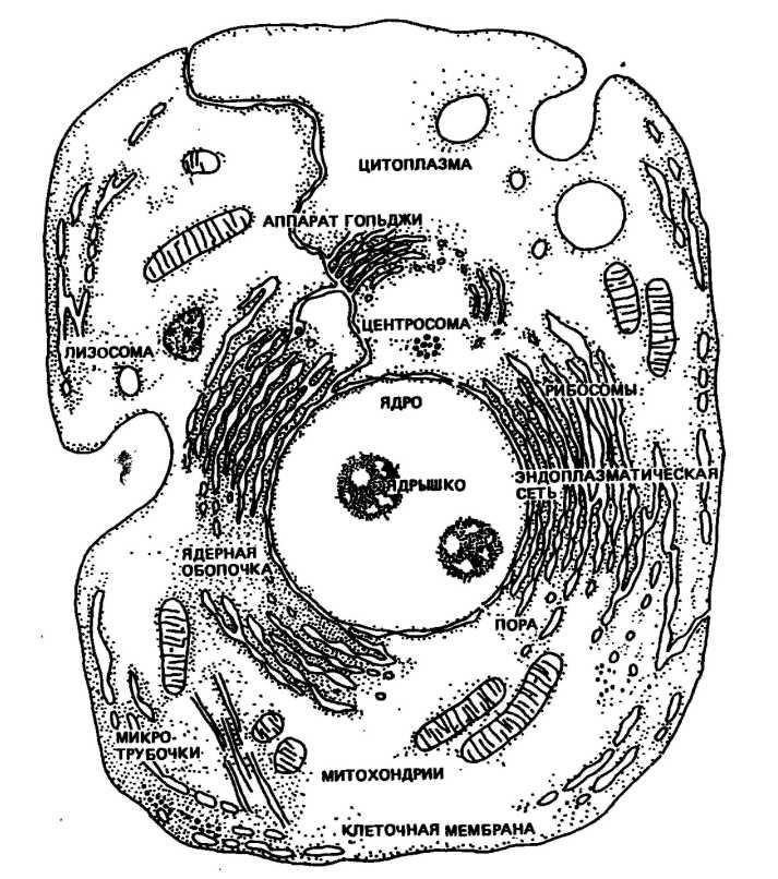![Схема эукариотической клетки животного]()