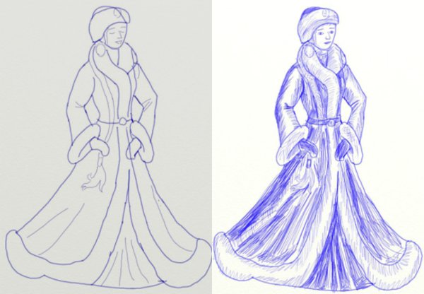 ![Снегурочка карандашом]()