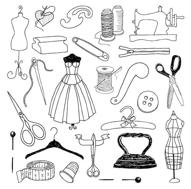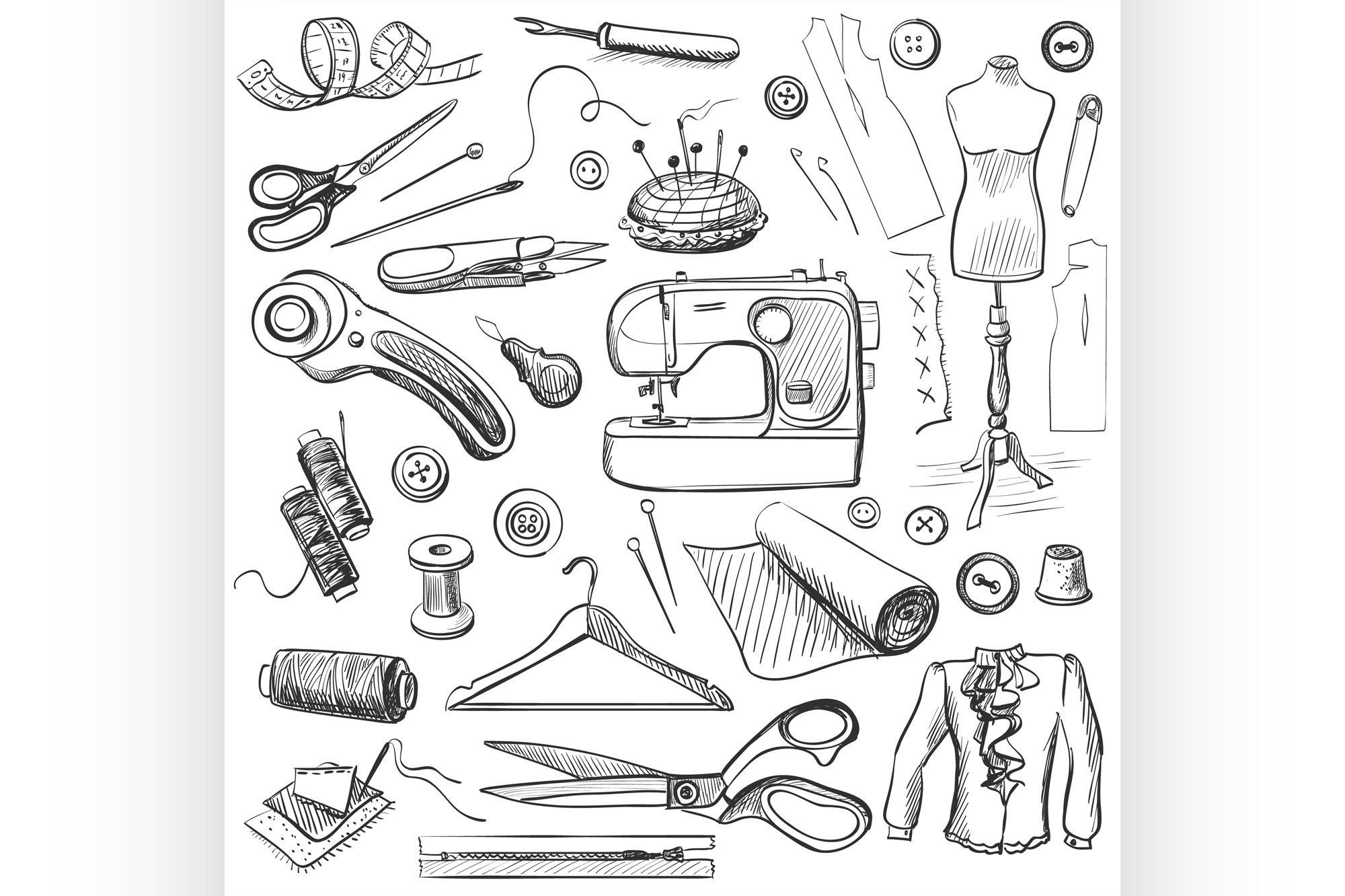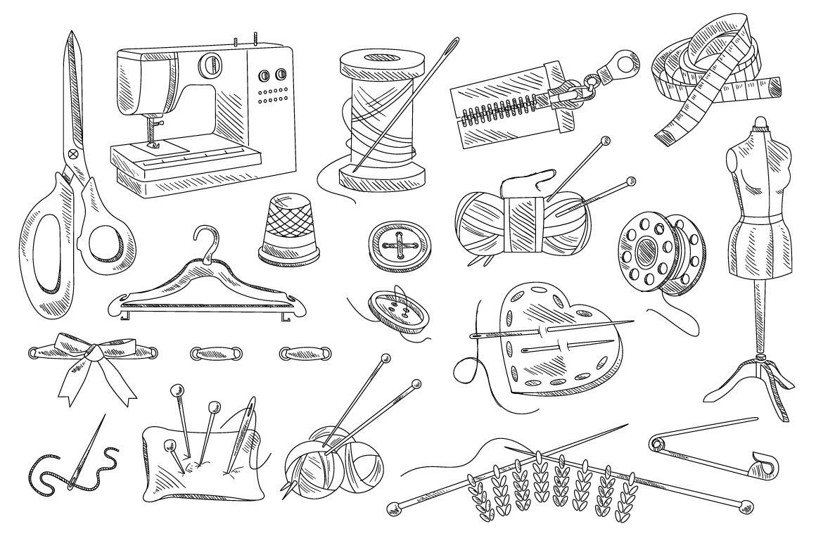 ![Эскизы швейных принадлежностей]()