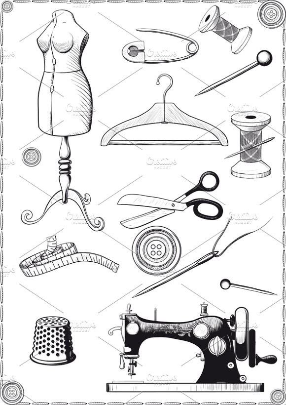 Эскизы швейных принадлежностей