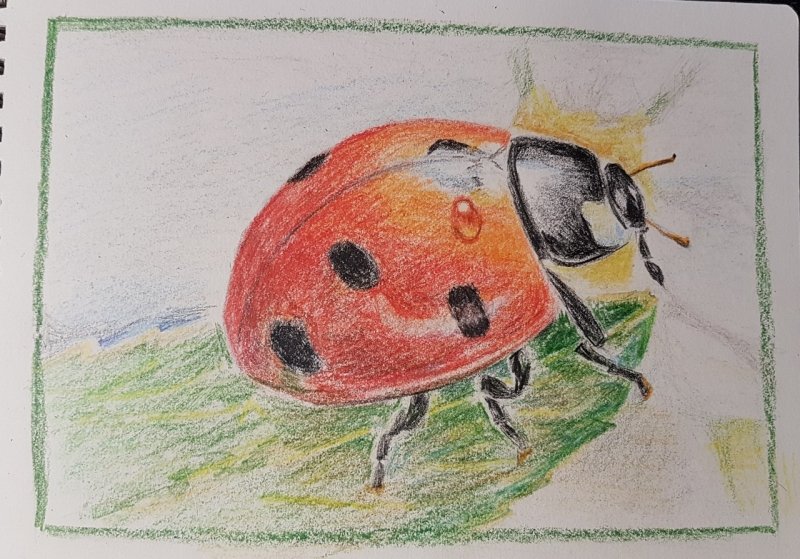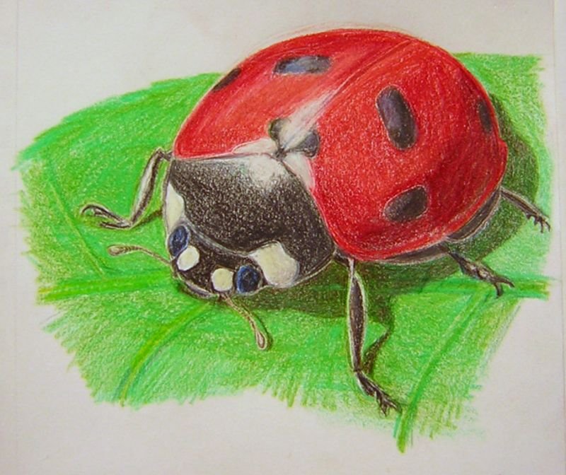 ![Божья коровка цветными карандашами]()