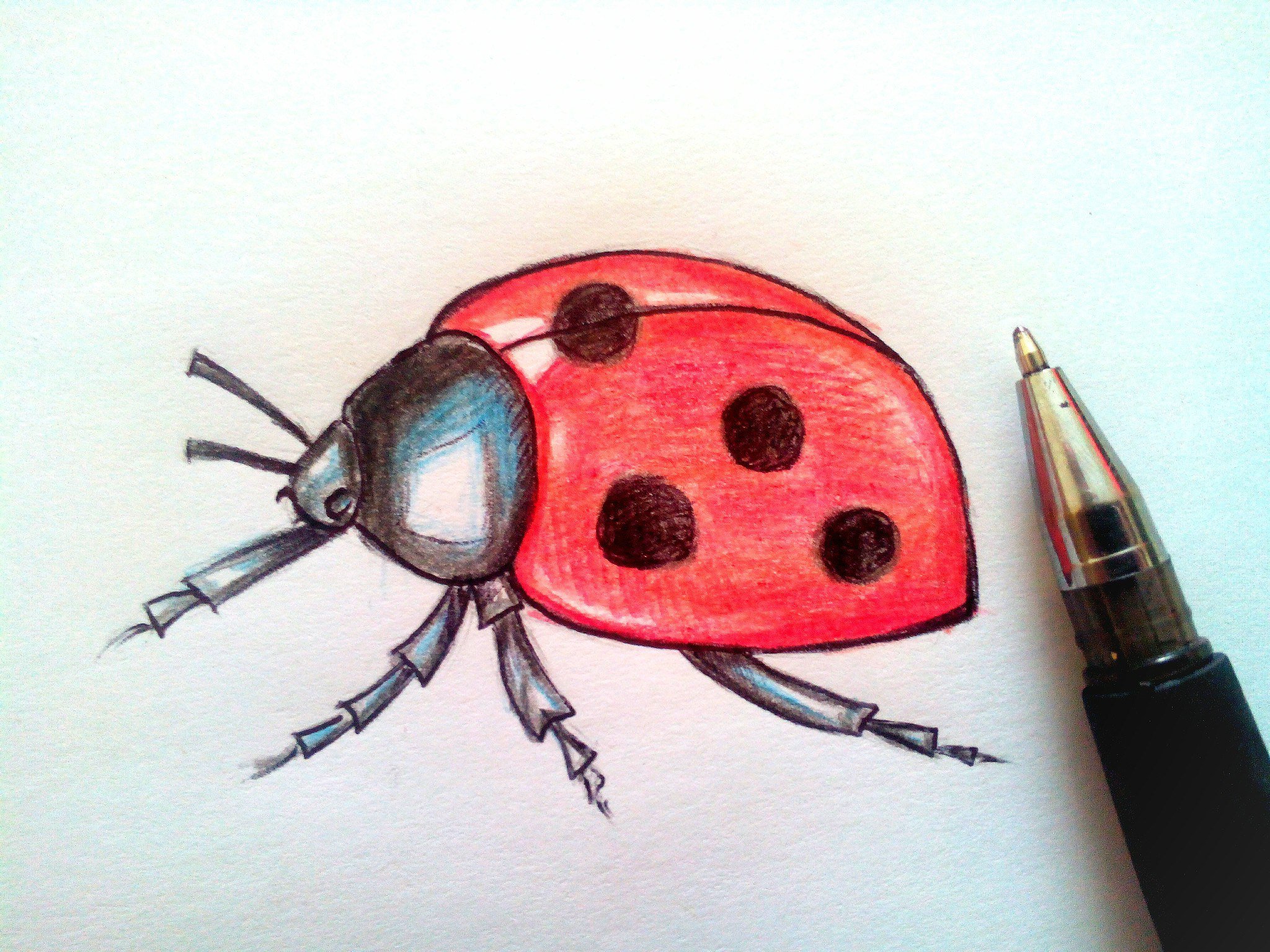 ![Божья коровка карандашом]()