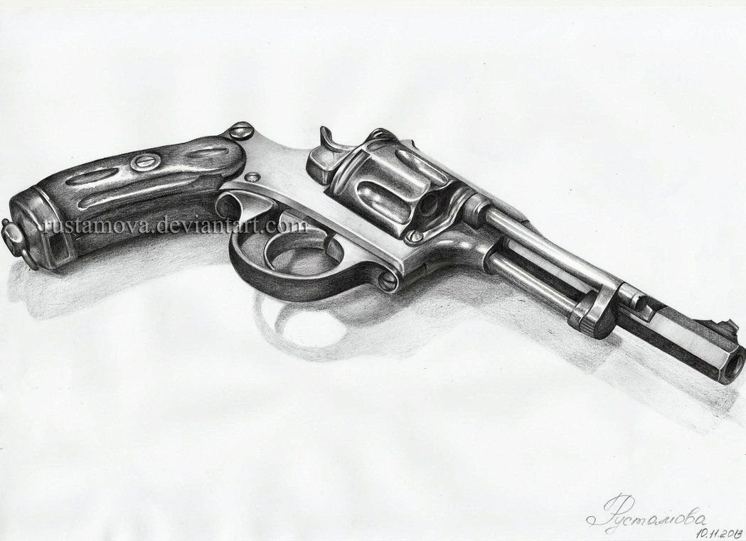 ![Револьвер рисунок карандашом]()
