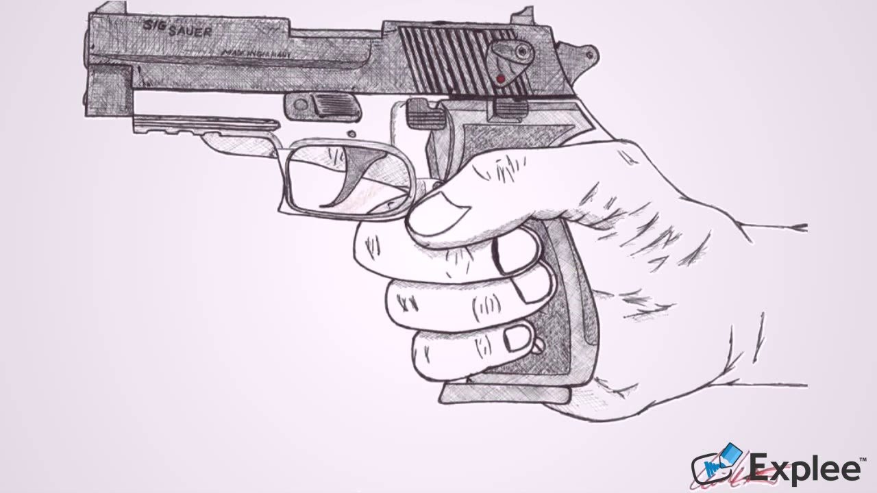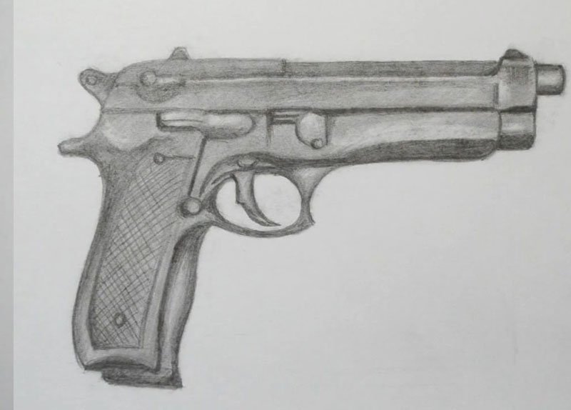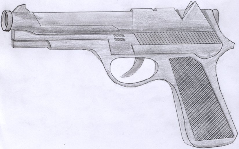 Нарисовать пистолет карандашом