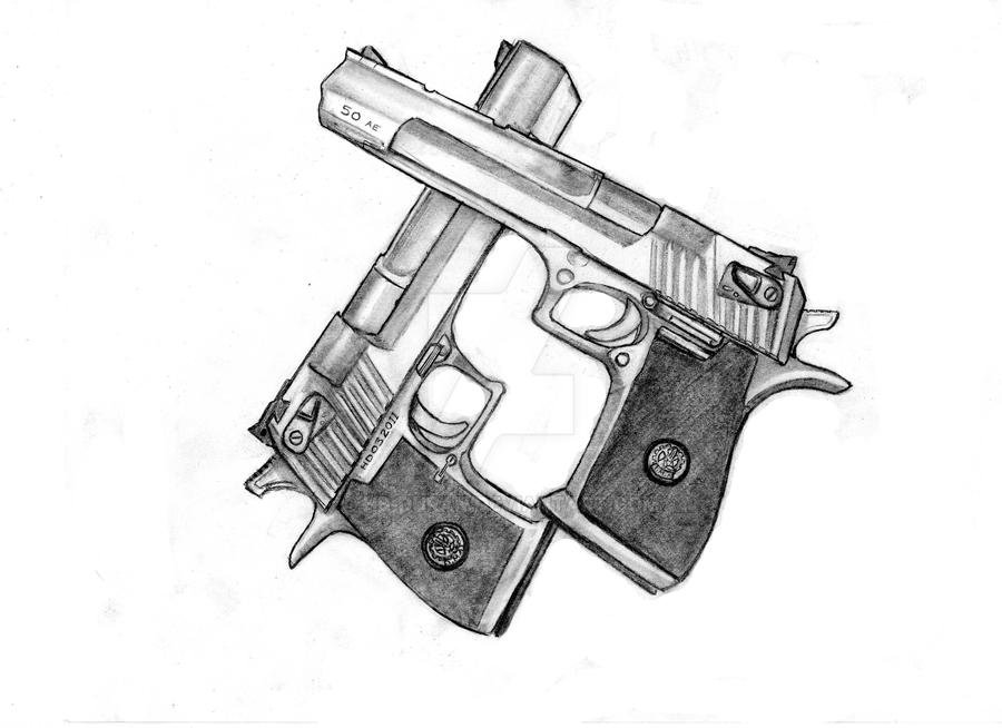 ![Дигл пистолет рисунок карандашом]()