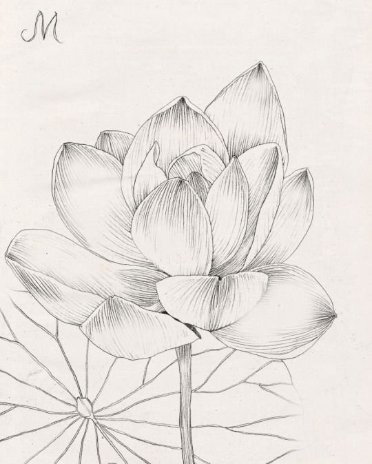 ![Лотус рисунок карандашом]()