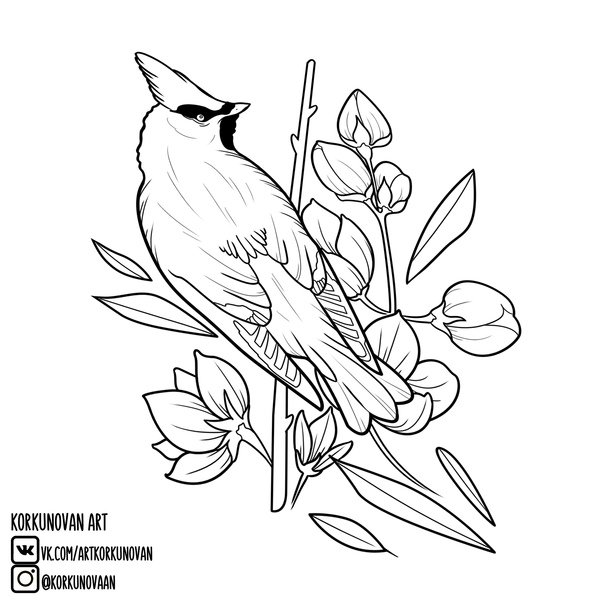 ![Свиристель птица нарисовать]()