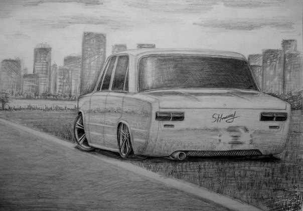 ![Рисунки русских авто карандашом]()